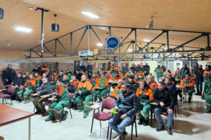 Çankaya Belediye Başkan Yardımcısı Yusuf Aknişan ile DİSK Genel-İş Ankara 1 Nolu Şube Başkanı İsmail Yıldırım, Temizlik İşleri Müdürlüğü personelinin yeni yılını kutlamak amacıyla, gece çöp toplama görevine çıkmadan önce Mühye Temizlik İşleri Şantiyesi’ni ziyaret etti.